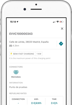 We'll help you locate charging points near you. Check the connectors and the type of charge.