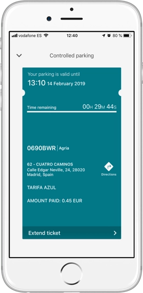 Continue estacionado, é possível ampliar o tempo do seu ticket ou obter um novo onde quer que esteja.*